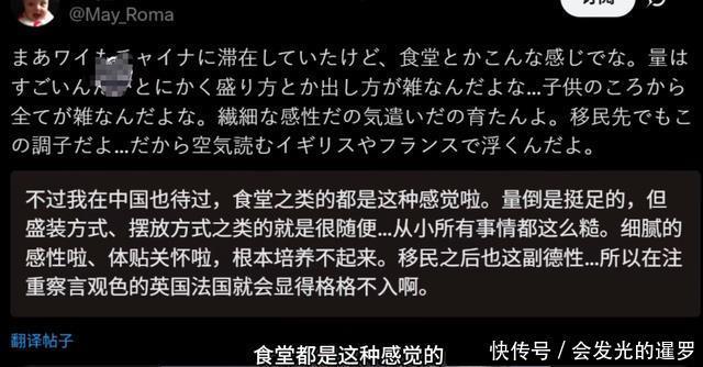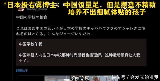 “对比之下,日本小学的午餐简直不够塞牙缝”“能吃到正宗中国菜的学校午餐,想想都羡慕”。 还有人直接吐槽自家校餐:“日本学校的饭又少又难吃,跟中国比差太远了”。 眼看风向不对,这博主不甘心,又重新编辑文案再发一次,试图挽尊: “中国食堂量是足,但摆盘太糙,一点不精致,会让孩子长大后缺乏细腻体贴的品质,移民后也融入不了注重察言观色的英法社会”。